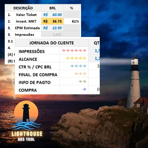 LIGHTHOUSE ADS TOOL, ou FERRAMENTA FAROL DE ANÚNCIOS, leva esse nome exatamente para que você possa se orientar rapidamente quando se sentir perdido em suas campanhas de anúncios.